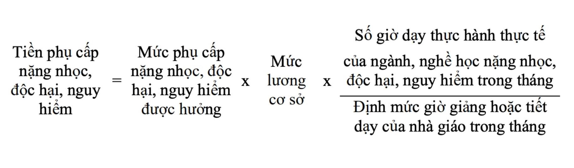 Trong đó, công thức tính tiền phụ cấp nặng nhọc, độc hại, nguy hiểm đối với giáo viên được quy định rõ tại Khoản 4 Điều 9 dự thảo Nghị định, như sau: