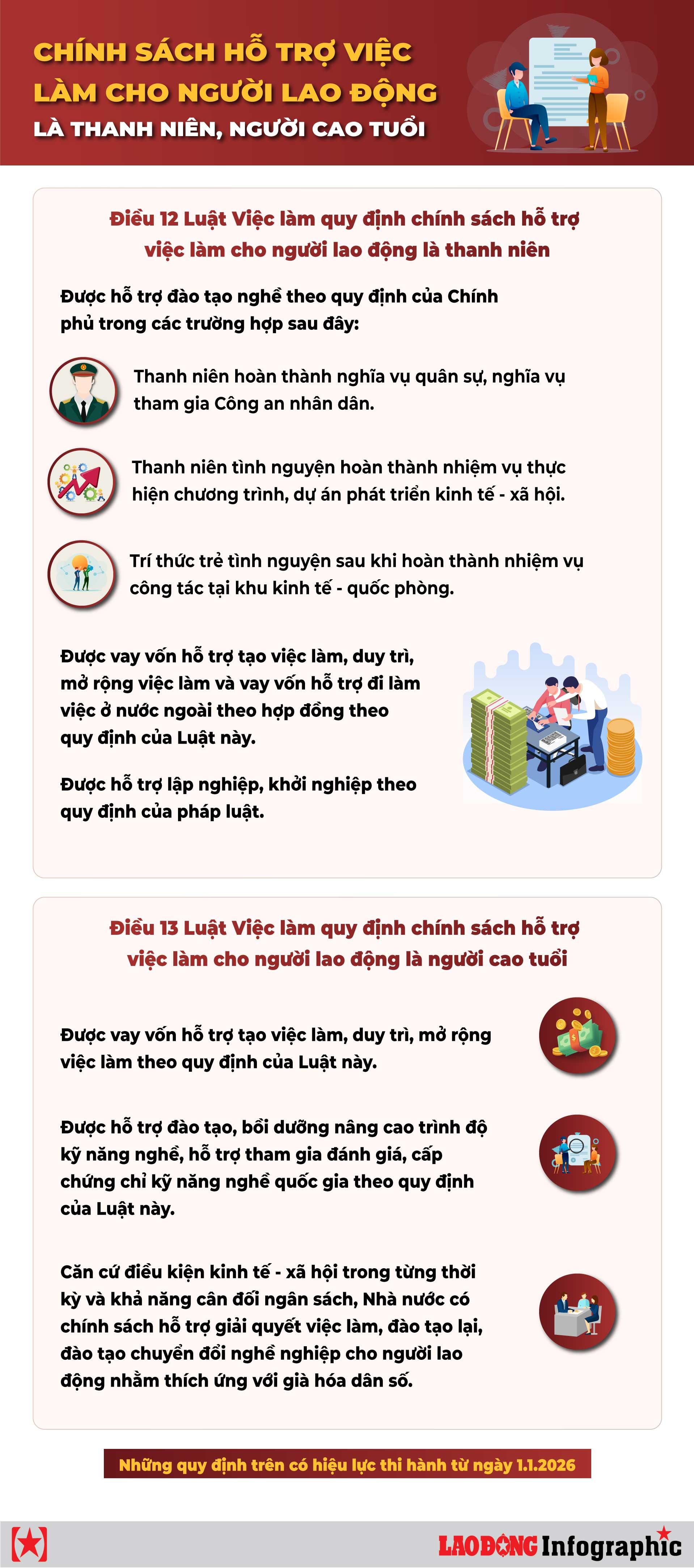 Dưới đây là quy định chi tiết về chính sách hỗ trợ việc làm cho người lao động là thanh niên, người cao tuổi.