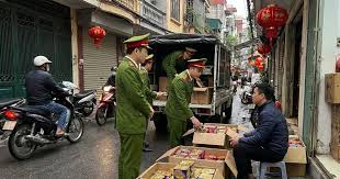Lực lượng chức năng kiểm tra, xử lý hành vi đốt và buôn bán pháo trái phép trước thềm Tết Nguyên đán. Hình minh họa