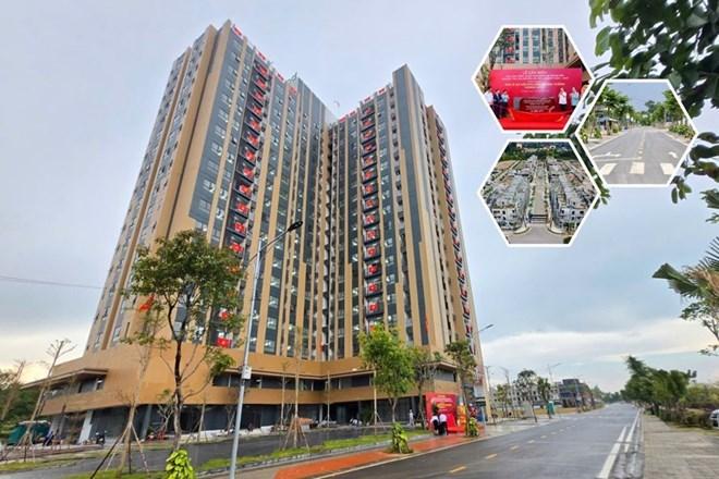 Công trình nhà ở xã hội duy nhất được gắn biển chào mừng Đại hội Đảng bộ tỉnh Thái Nguyên. Ảnh: Việt Hoan