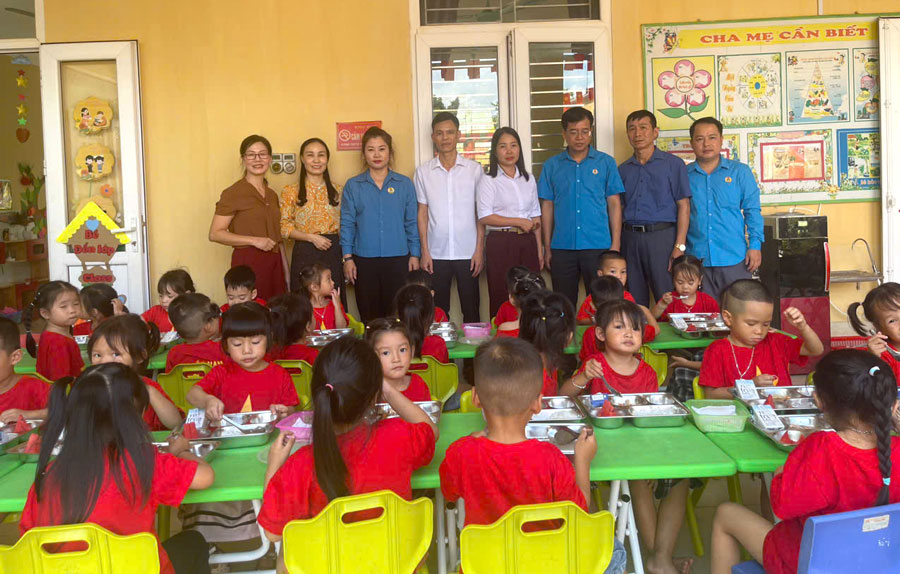 Nhằm chăm lo đời sống, nâng cao chất lượng dinh dưỡng cho trẻ em có hoàn cảnh khó khăn, Công đoàn phường Nghĩa Lộ (tỉnh Lào Cai) vừa phối hợp với Trường Mầm non Hoa Sữa tổ chức bữa cơm miễn phí cho các cháu học sinh tại hai điểm trường (điểm trường Trung tâm và điểm trường thôn Nậm Đông 1).