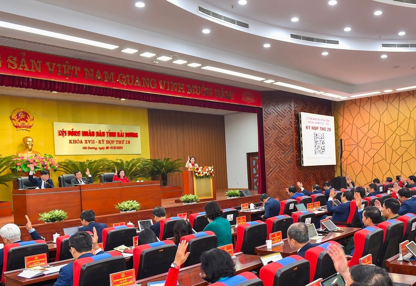 Kỳ họp thứ 28 HĐND tỉnh Hải Dương khoá XVII thông qua 37 nghị quyết. Ảnh: Báo Hải Dương