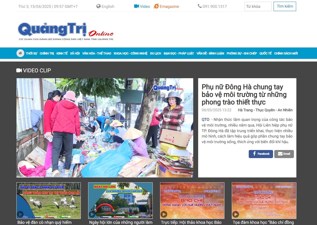 Báo Quảng Trị có nhiều bài viết, video về bảo vệ môi trường, chuyển đổi xanh. Ảnh: Chụp màn hình