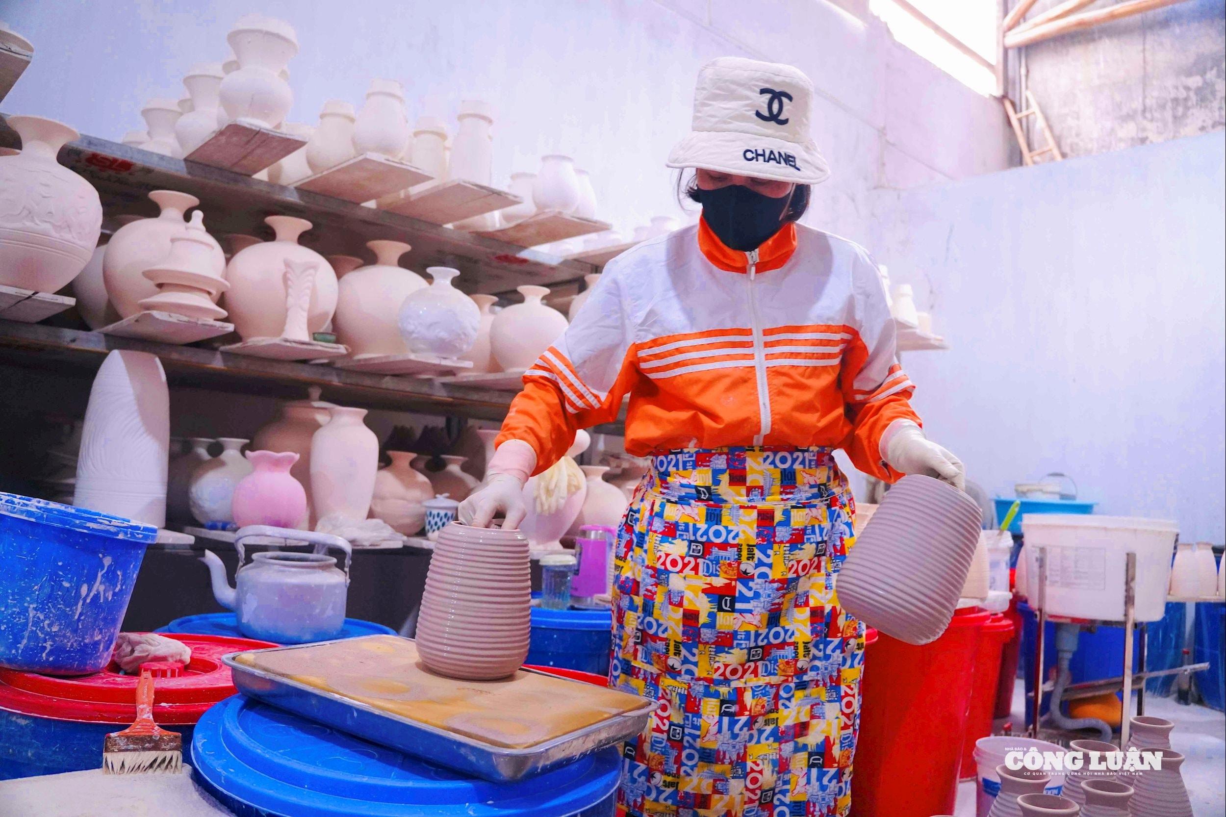 Đội ngũ thợ gốm cùng nhau thực hiện các công đoạn để đảm bảo tiến độ đơn hàng Tết.