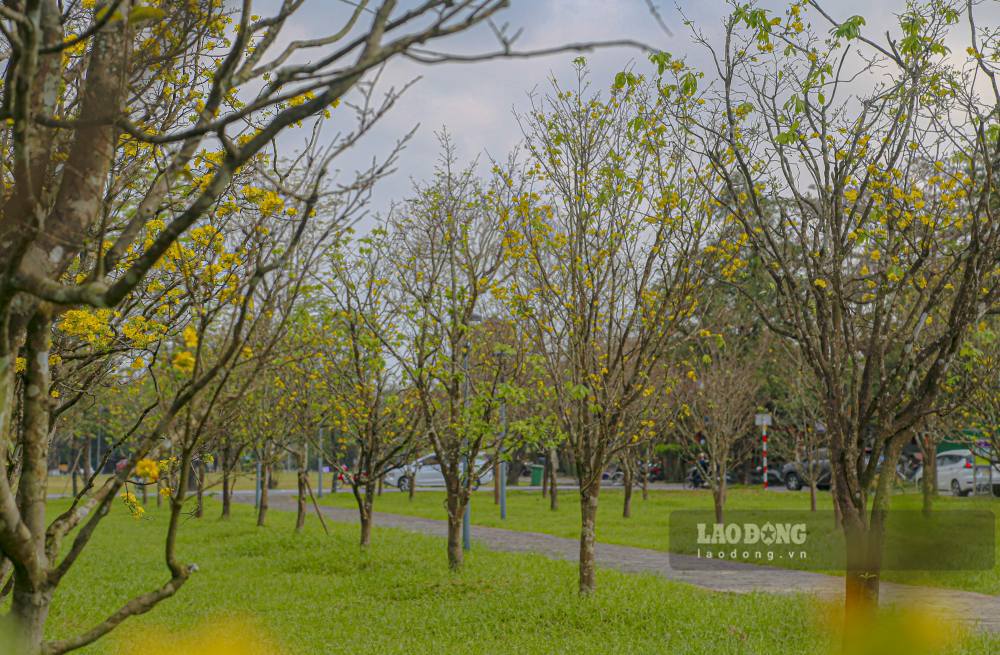Dưới sự chăm sóc công phu của công nhân Trung tâm Công viên cây xanh Huế, nhiều cây đã bắt đầu nở những bông hoa đầu tiên, rung rinh trong nắng đông.