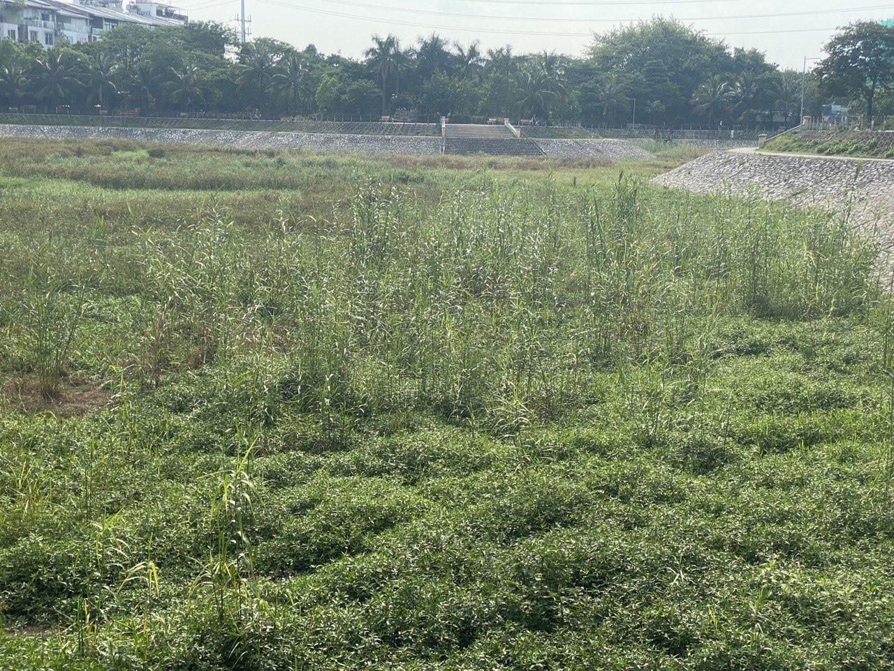 Cỏ cây mọc um tùm, cao quá đầu người tại lòng hồ Trung Văn. Ảnh: Bích Lộc.