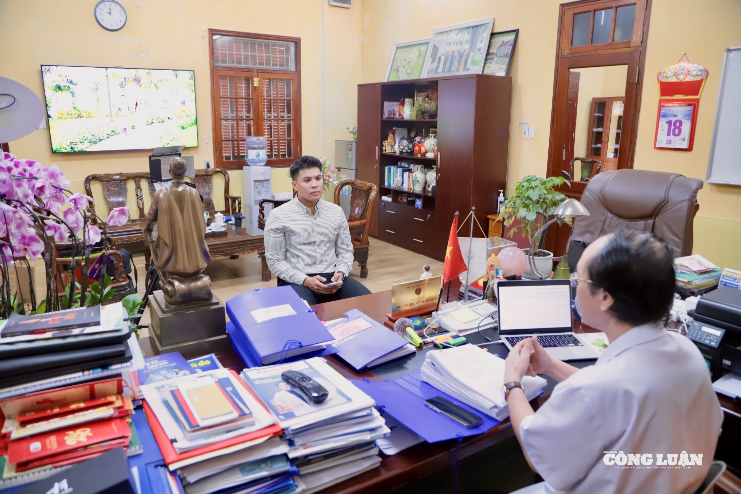 Phóng viên Báo Nhà báo và Công luận trong cuộc phỏng vấn cùng PGS.TS.BSCC Vũ Xuân Phú.