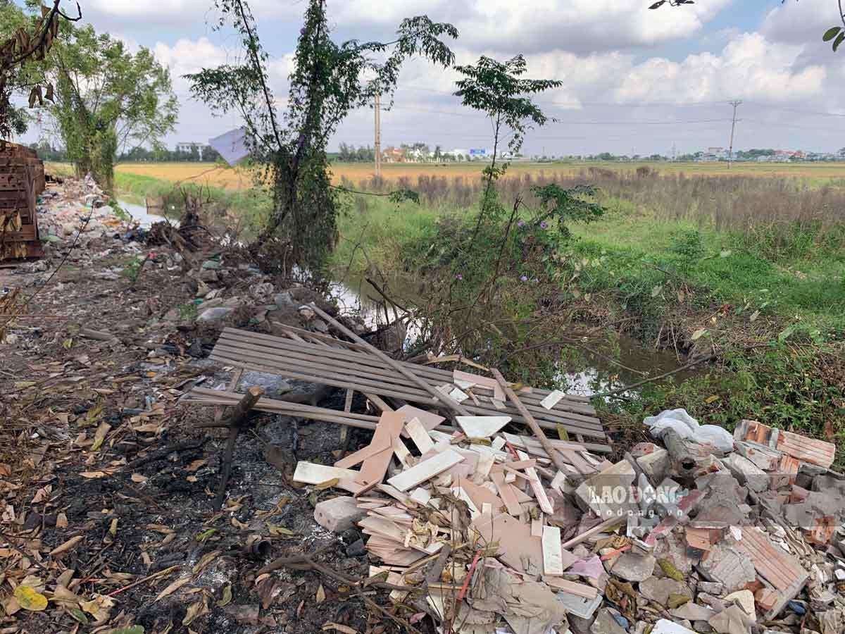 Rác thải hai bên đường gần nghĩa trang thôn Vân Chàng (thị trấn Nam Giang, huyện Nam Trực, tỉnh Nam Định). Ảnh: Hà Vi