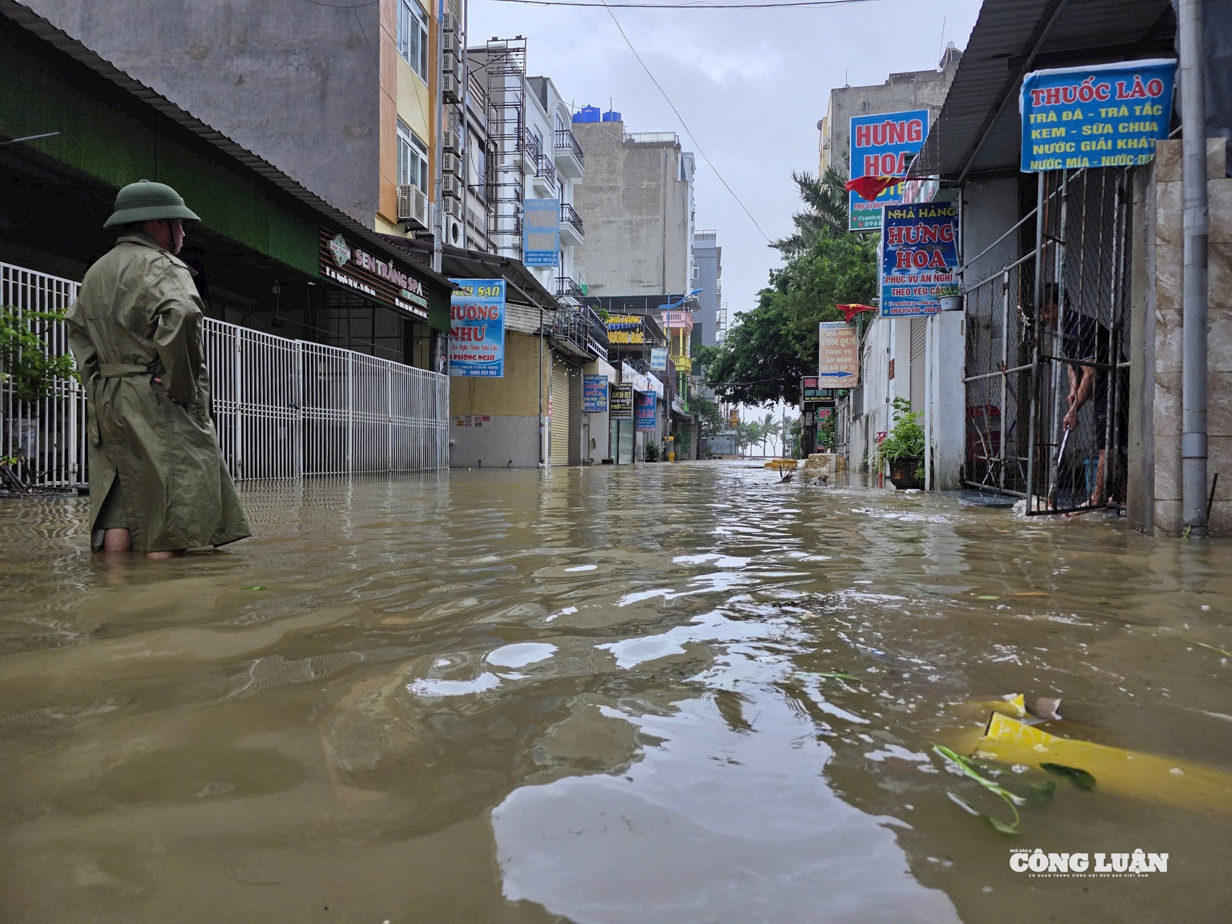 Nước ngập sâu tại khu vực cách biển Sầm Sơn 100m