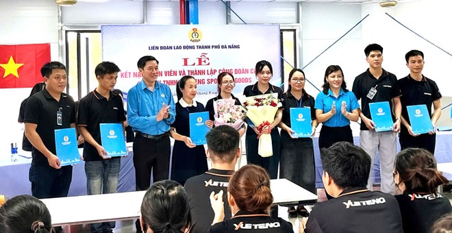 Tin từ Liên đoàn Lao động thành phố Đà Nẵng ngày 23.9 cho biết: Liên đoàn Lao động thành phố vừa tổ chức lễ kết nạp đoàn viên và ra mắt Công đoàn cơ sở Công ty TNHH Yue Teng Sporting Goods, đóng tại Khu công nghiệp Tam Thăng, với 70 đoàn viên.