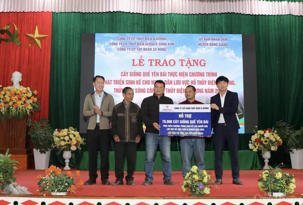 Ngày 18/12, UBND huyện Đông Giang (tỉnh Quảng Nam) tổ chức trao tặng 212.604 cây giống quế Yên Bái nhằm phát triển sinh kế cho người dân lưu vực các hồ thủy điện A Vương, Sông Côn 2 và Za Hưng, trong đó Công ty Cổ phần Thủy điện A Vương hỗ trợ kinh phí mua 70.000 cây.