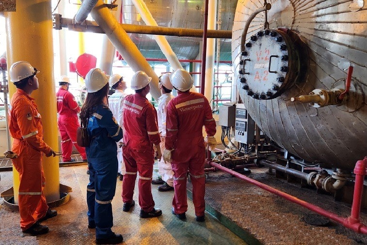 Đoàn công tác kiểm tra công tác an toàn vệ sinh lao động, công tác 5S tại các khu vực sản xuất trên giàn.