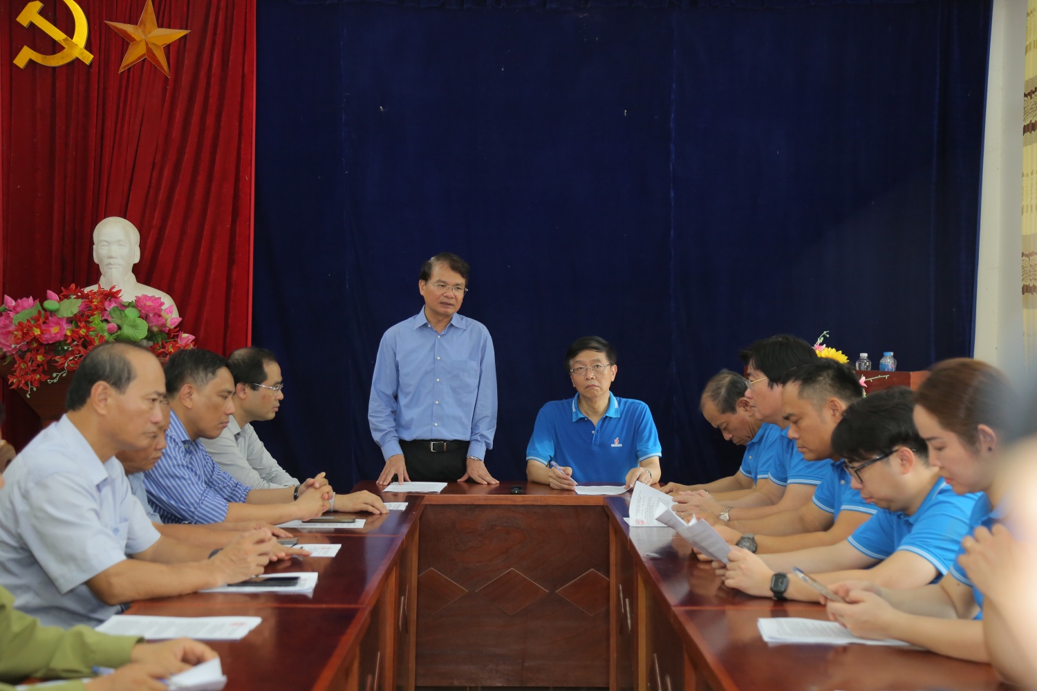 Ngày 21/9, ngay sau khi khởi công tái thiết khu dân cư thôn kho vàng, đoàn công tác của Tỉnh ủy Lào Cai và Tập đoàn Dầu khí Việt Nam (Petrovietnam) đã có cuộc họp, trao đổi cụ thể về tình hình và phương án triển khai tiếp theo của dự án thôn Kho Vàng.