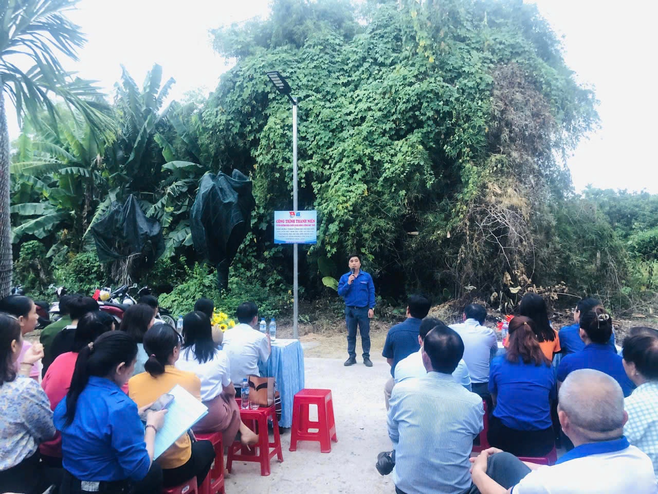 Đoàn Thanh niên PTSC Quảng Ngãi phối hợp cùng các tổ chức chính trị - xã hội, đoàn thể thực hiện và bàn giao công trình thanh niên “Lắp đặt đường điện chiếu sáng năng lượng mặt trời”. |