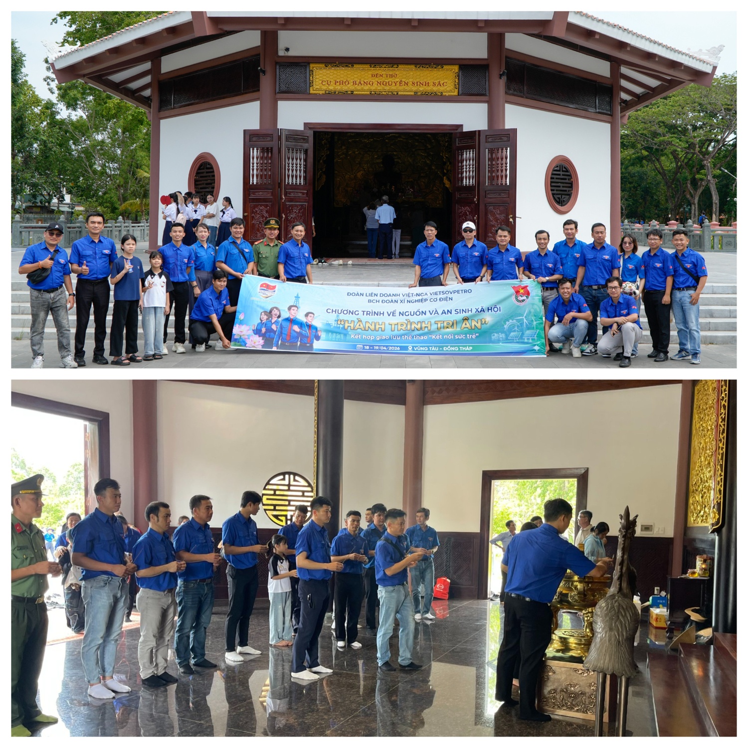 Trong hai ngày 18-19/4/2026, Đoàn cơ sở Xí nghiệp Cơ điện, Liên doanh Vietsovpetro - đơn vị thành viên của Tập đoàn Công nghiệp - Năng lượng Quốc gia Việt Nam (Petrovietnam) tổ chức chương trình về nguồn và an sinh xã hội tại tỉnh Đồng Tháp, nhân dịp kỷ niệm 51 năm Ngày Giải phóng miền Nam, thống nhất đất nước (30/4/1975 - 30/4/2026). Hoạt động diễn ra trong khuôn khổ chương trình công tác năm 2026 của đơn vị, với các nội dung chính gồm: dâng hương, tìm hiểu lịch sử, giao lưu với cựu thanh niên xung phong, trao tặng kệ sách và học bổng cho học sinh có hoàn cảnh khó khăn.