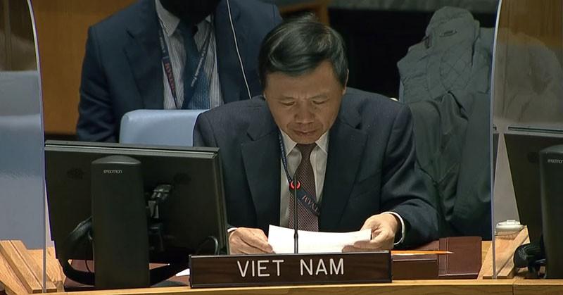 | Đại sứ Đặng Đình Quý, Trưởng Phái đoàn đại diện Việt Nam tại LHQ phát biểu tại cuộc họp |