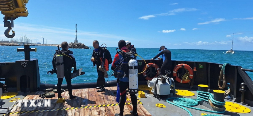 Một nhóm lặn thuộc câu lạc bộ "Bảo vệ bờ biển" tham gia dọn rác ở bãi biển thành phố Ashkelon (Israel)