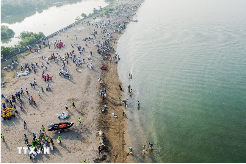 Tình nguyện viên dọn rác trên bờ biển ở Vịnh Manila (Philippines)
