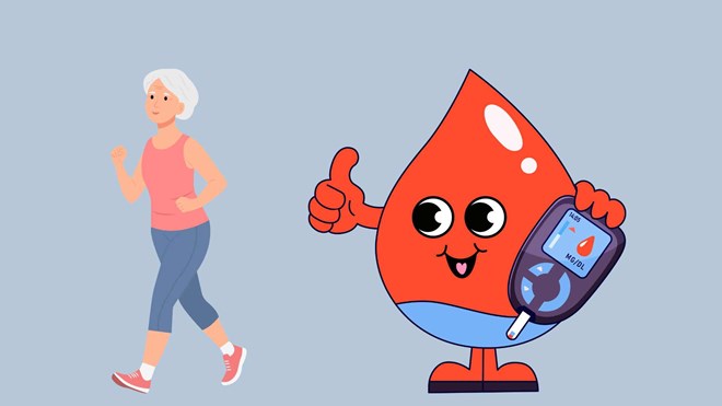 Đi bộ nhẹ nhàng trong 10–15 phút sau khi ăn giúp ổn định đường huyết. Ảnh đồ họa: Hoàng Lộc