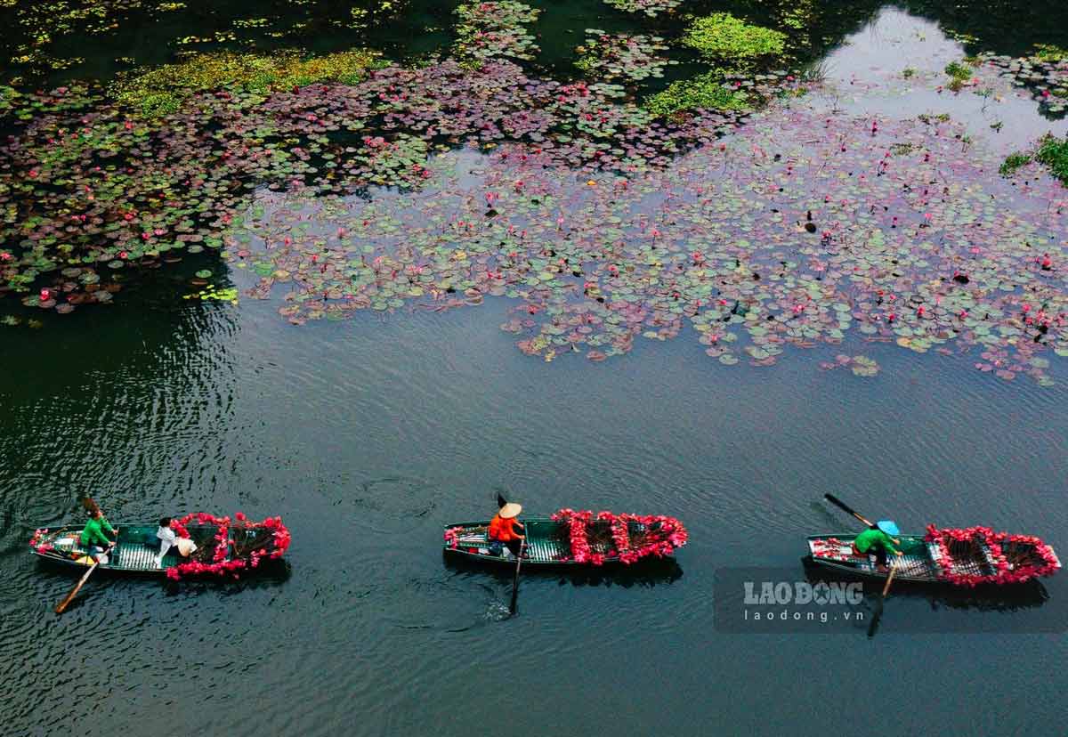 Ninh Bình - Thời điểm này đến với Tam Cốc - Bích Động, du khách sẽ được đắm chìm trong vẻ đẹp của hoa súng nở rực hai bờ sông Ngô Đồng.