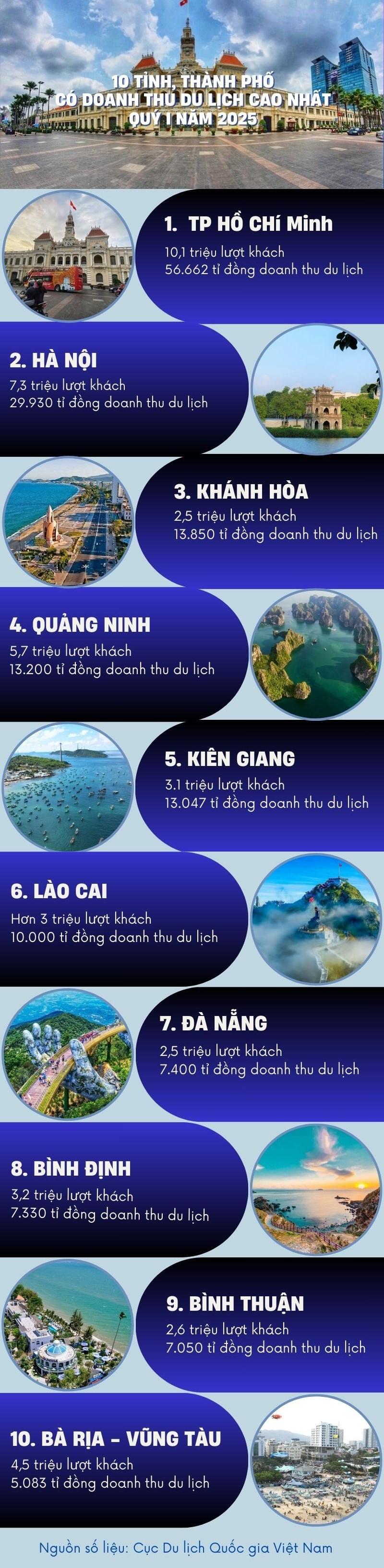 TPHCM, Hà Nội, Khánh Hòa, Quảng Ninh... là những tỉnh thành có doanh thu du lịch cao nhất trong Quý I/2025.