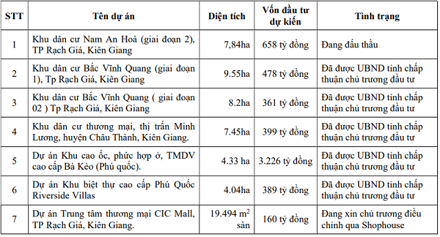 Ngoài ra, Công ty cũng đang trong quá trình hoàn thiện thủ tục đầu tư, đền bù giải toả mặt bằng và dự kiến triển khai kinh doanh 7 dự án mới.