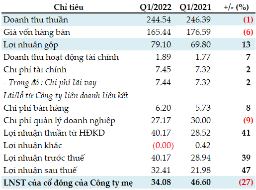 Trong khi đó, giá vốn giảm 6% giúp cho biên lãi gộp cải thiện từ 28% lên 32%.