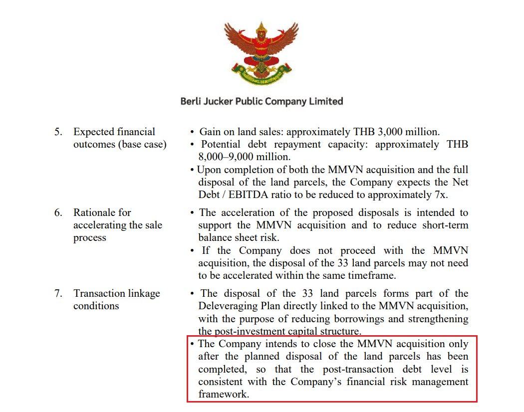 Theo cập nhật từ BJC, kế hoạch mua lại này sẽ sử dụng các khoản vay (borrowings), đi kèm chương trình BJC bán 33 lô đất chưa sử dụng để kiếm về ít nhất là 10 tỷ baht, khoảng 8.244 tỷ đồng, gần một nửa số tiền để thực hiện phi vụ mua lại.