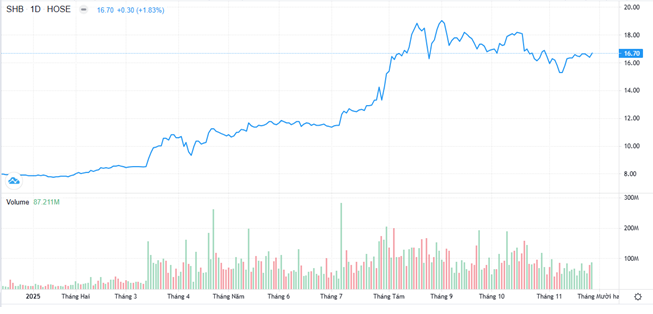 Diễn biến cổ phiếu SHB từ đầu năm |