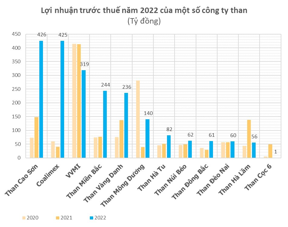 Không chỉ Than Miền Bắc mà nhìn chung các công ty than đều ghi nhận kết quả kinh doanh năm 2022 tăng trưởng mạnh so với năm trước. Những công ty than có mức tăng trưởng bằng lần trong năm vừa rồi có Than Cao Sơ, Coalimex, Than Miền Bắc và Than Mông Dương. Trong đó, Coalimex có mức tăng trưởng ấn tượng nhất, khi LNST đạt 425 tỷ đồng, gấp 10 lần cùng kỳ.