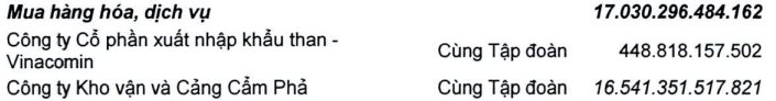 Đáng chú ý, doanh thu của TMB chủ yếu đến từ giao dịch với Công ty Kho vận và Cảng Cẩm Phả Vinacomin với giá trị bán hàng hóa, dịch vụ lên tới 17.819 tỷ đồng. Ngược lại, TMB cũng mua hàng hóa, dịch vụ từ Công ty Kho vận và Cảng Cẩm Phả Vinacomin với giá trị 16.541 tỷ đồng.