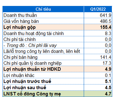 Về phần chi phí, chi phí bán hàng chiếm chủ yếu, ghi nhận 141.4 tỷ đồng. Chi phí quản lý doanh nghiệp ở mức 17.3 tỷ đồng.