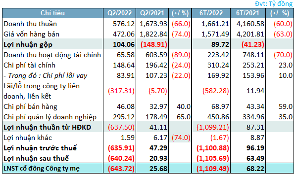 Kết quả kinh doanh của FLC trong quý 2 và nửa đầu năm 2022 Nguồn: VietstockFinance |