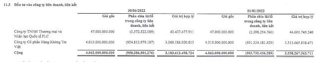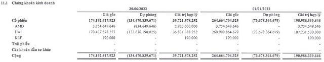 Danh mục cổ phiếu FLC tính đến thời điểm 30/06 chủ yếu có AMD và HAI. Cả 2 mã này đã giảm khoảng 78% so với giá gốc, khiến Công ty phải trích lập dự phòng giảm giá hơn 134 tỷ đồng. Bên cạnh đó, các khoản lợi nhuận từ công ty liên doanh, liên kết (gồm Công ty TNHH Thương mại và Nhân lực Quốc tế FLC, và CTCP Hàng không Tre Việt) cũng âm hơn 958 tỷ đồng. Doanh thu giảm mạnh cùng việc thua lỗ khoản đầu tư trên khiến FLC có nửa đầu năm kinh doanh đầy ảm đạm.