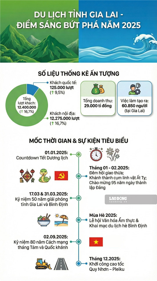 Bức tranh du lịch tỉnh Gia Lai năm 2025. Đồ họa: Hoài Phương