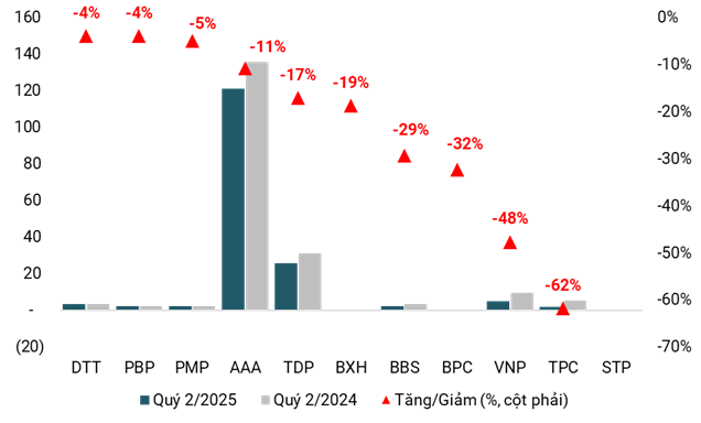 Không ít doanh nghiệp báo lãi giảm quý 2/2025 (Đvt: tỷ đồng)