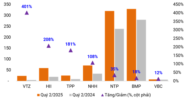 Mảng nhựa gia dụng cũng là một điểm sáng. Nhựa Việt Thành (HNX: VTZ) ghi nhận doanh thu 1.2 ngàn tỷ đồng, tăng gần 49%. Lợi nhuận 24 tỷ đồng, gấp 5 lần cùng kỳ nhờ mở rộng kênh phân phối và bán hàng trực tuyến.