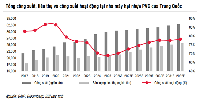 Tại Việt Nam, thị trường bất động sản đang khởi sắc với nhiều dự án tái khởi động và chính sách hỗ trợ nhà ở, qua đó thúc đẩy nhu cầu xây dựng trung hạn. Tuy vậy, triển vọng sản xuất tại Trung Quốc vẫn yếu, công suất các nhà máy PVC khó quay lại mức 2021 trước năm 2032, khiến giá có thể duy trì vùng thấp trong thời gian dài.