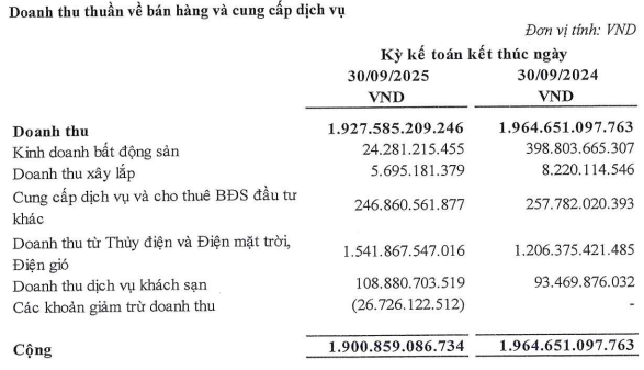 Cơ cấu doanh thu thuần của HDG trong 9 tháng đầu năm ![]() Nguồn: BCTC hợp nhất quý 3/2025 |