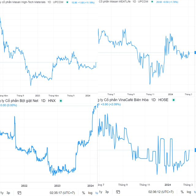 Ngoài MSN hay MCH, các cổ phiếu khác của họ Masan như MSR của Masan High - Tech Materials, MML của Masan MeatLife, VCF của Vinacafe Biên Hòa hay NET của Bột giặt NET cũng "nổi sóng" trong thời gian qua. Trong đó, cổ phiếu NET cũng đang giao dịch ở vùng đỉnh sau khi báo lãi kỷ lục.