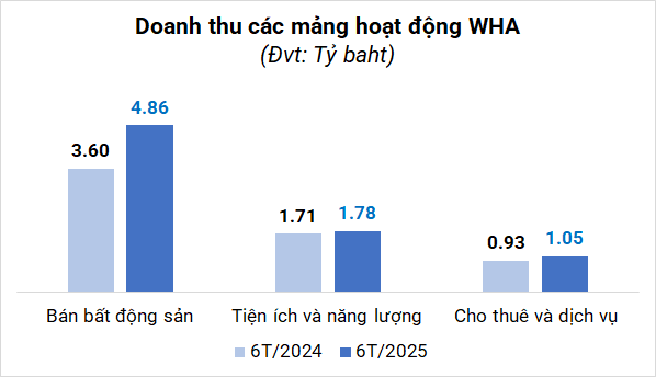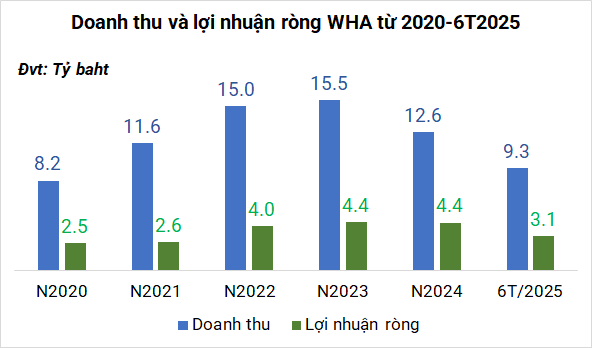 Nửa đầu 2025, WHA đạt doanh thu hợp nhất hơn 9.3 tỷ baht (288 triệu USD), tăng 32% so với cùng kỳ; lợi nhuận ròng đạt hơn 3.1 tỷ baht (97 triệu USD), tăng 24%.
