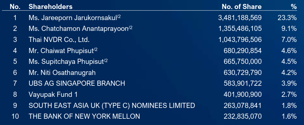 Hiện Chủ tịch Tập đoàn Jareeporn Jarukornsakul là cổ đông lớn nhất nắm 23.29% vốn WHA Group.