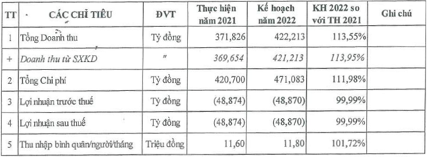Thêm nữa, đơn vị sẽ phấn đấu ký kết mới ít nhất 3 dự án chế tạo với tổng giá trị hợp đồng trên 200 tỷ đồng và tiếp tục phấn đấu kéo giảm thua lỗ thấp hơn năm 2021, trả nợ gốc khoản vay ủy thác để giảm quy mô khoản nợ xuống dưới 600 tỷ đồng.
