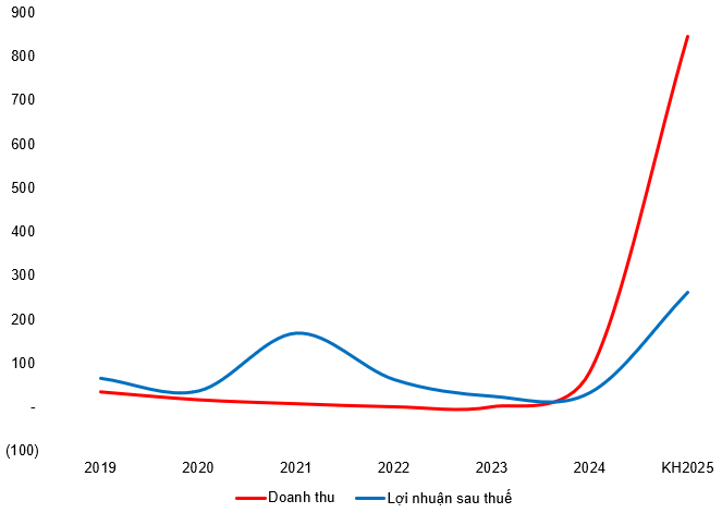 Kết quả kinh doanh của mảng Phát triển bất động sản trong giai đoạn 2019-KH2025
