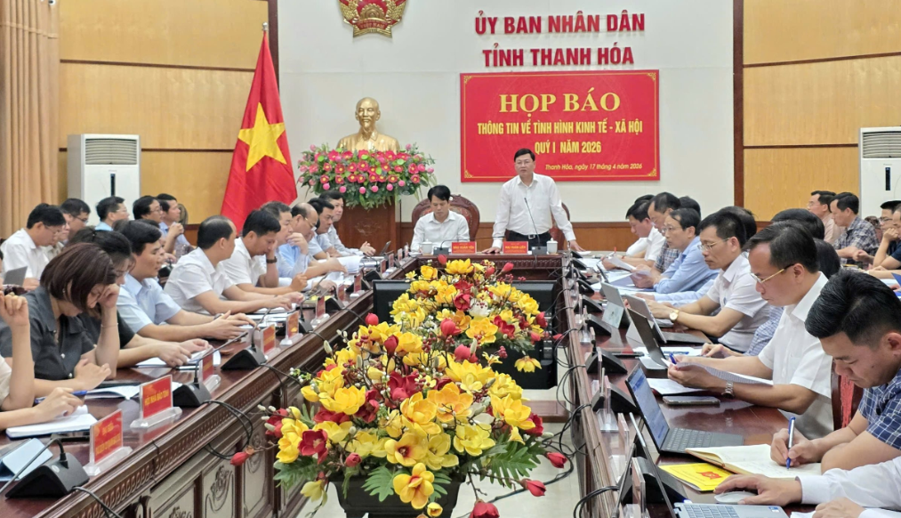 Chiều 17/4, UBND tỉnh Thanh Hoá tổ chức họp báo thông tin về tình hình kinh tế - xã hội quý I năm 2026 với nhiều kết quả tích cực, tạo nền tảng cho mục tiêu tăng trưởng cao trong năm nay.