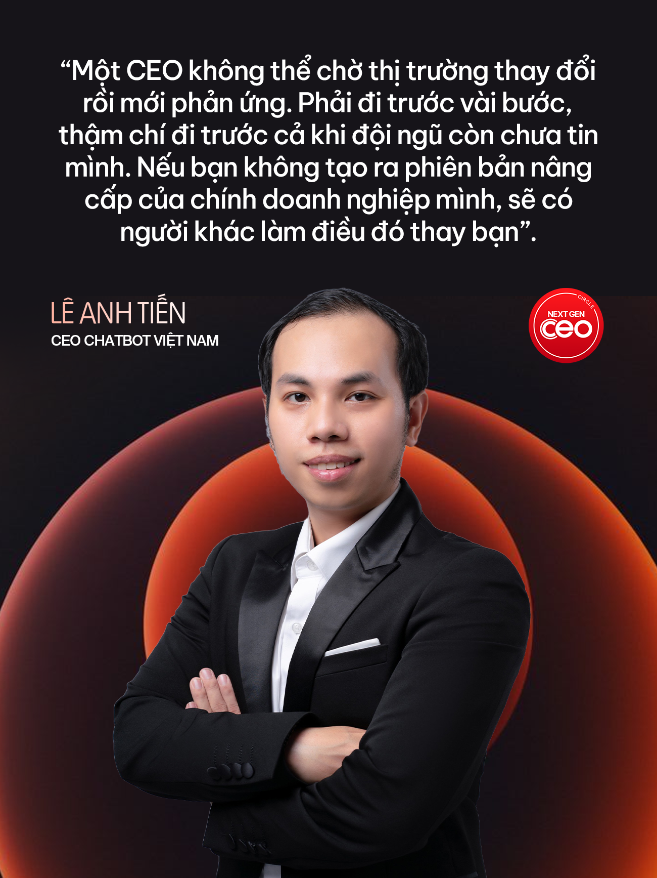 CEO Lê Anh Tiến chia sẻ: “Một CEO không thể chờ thị trường thay đổi rồi mới phản ứng. Phải đi trước vài bước, thậm chí đi trước cả khi đội ngũ còn chưa tin mình. Nếu bạn không tạo ra phiên bản nâng cấp của chính doanh nghiệp mình, sẽ có người khác làm điều đó thay bạn”.