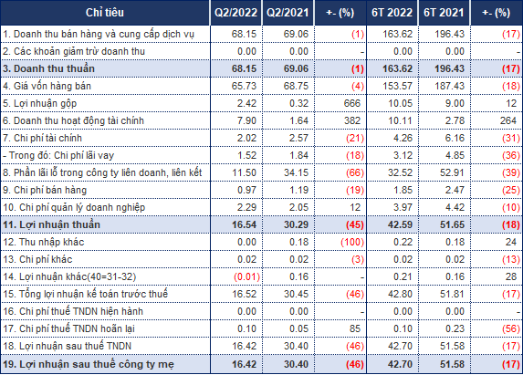 Khoản lợi nhuận từ công ty liên doanh, liên kết của CTCP Nhựa Việt Nam (UPCoM: VNP) trong quý 2/2022 giảm đáng kể so với cùng kỳ, đây là nguyên chính khiến lãi ròng giảm mạnh 46% còn 16 tỷ đồng.