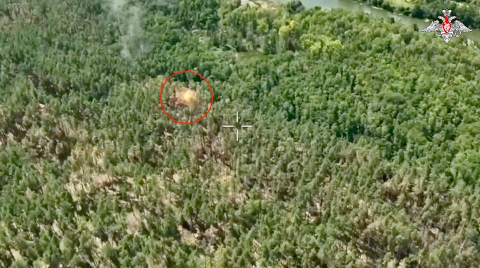 Video do Bộ Quốc phòng Nga công bố cho thấy, những mục tiêu của Ukraina ở sâu trong rừng, được ngụy trang kín đáo và dường như không thể nhìn thấy bằng mắt thường khi nhìn qua video ghi lại bởi máy bay không người lái (UAV).