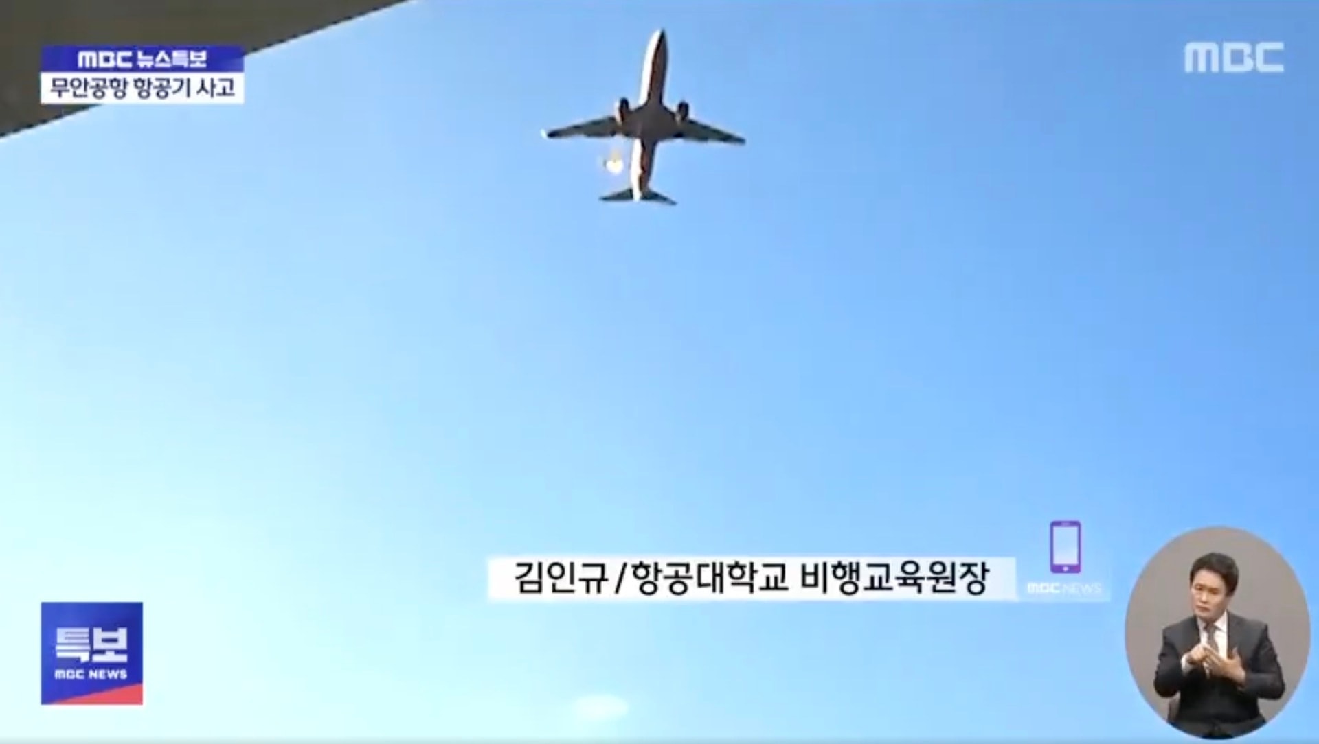 Chim va chạm vào động cơ của chiến Boeing 737 ngay trước nỗ lực hạ cánh tại Sân bay Muan. Ảnh: MBC