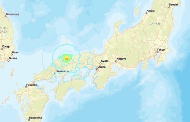 Trận động đất mạnh xảy ra tại vùng Chugoku, Nhật Bản ngày 6.1.